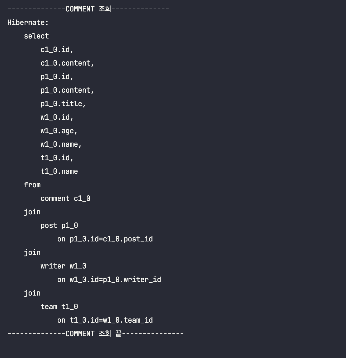 System.out.println("-------------- COMMENT ์กฐํ--------------");
