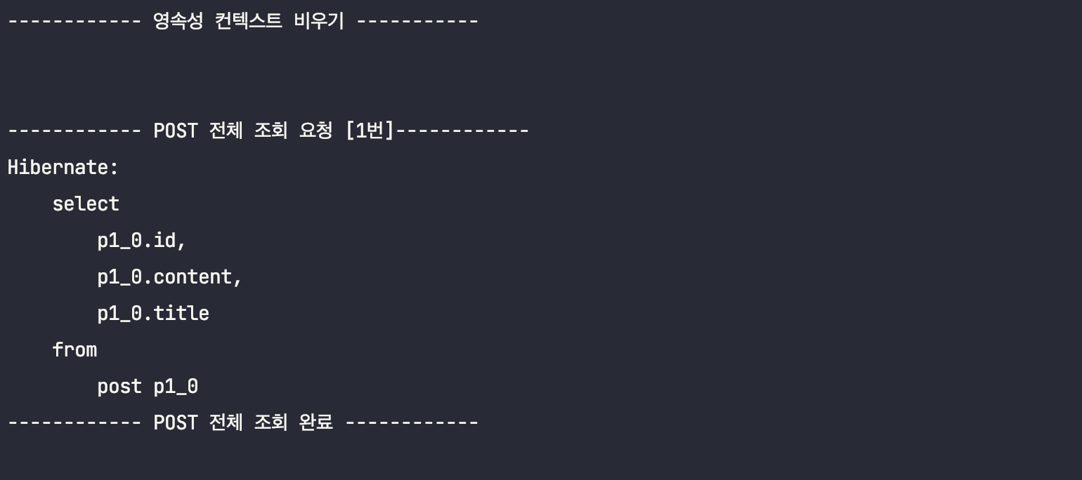 System.out.println("------------ POST ์ ์ฒด ์กฐํ ์๋ฃ. [1๋ฒ์ ์ฟผ๋ฆฌ ๋ฐ์]------------\n\n");