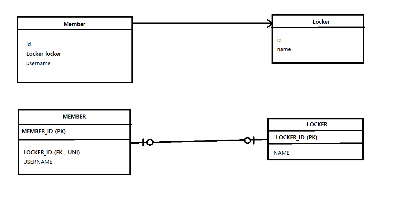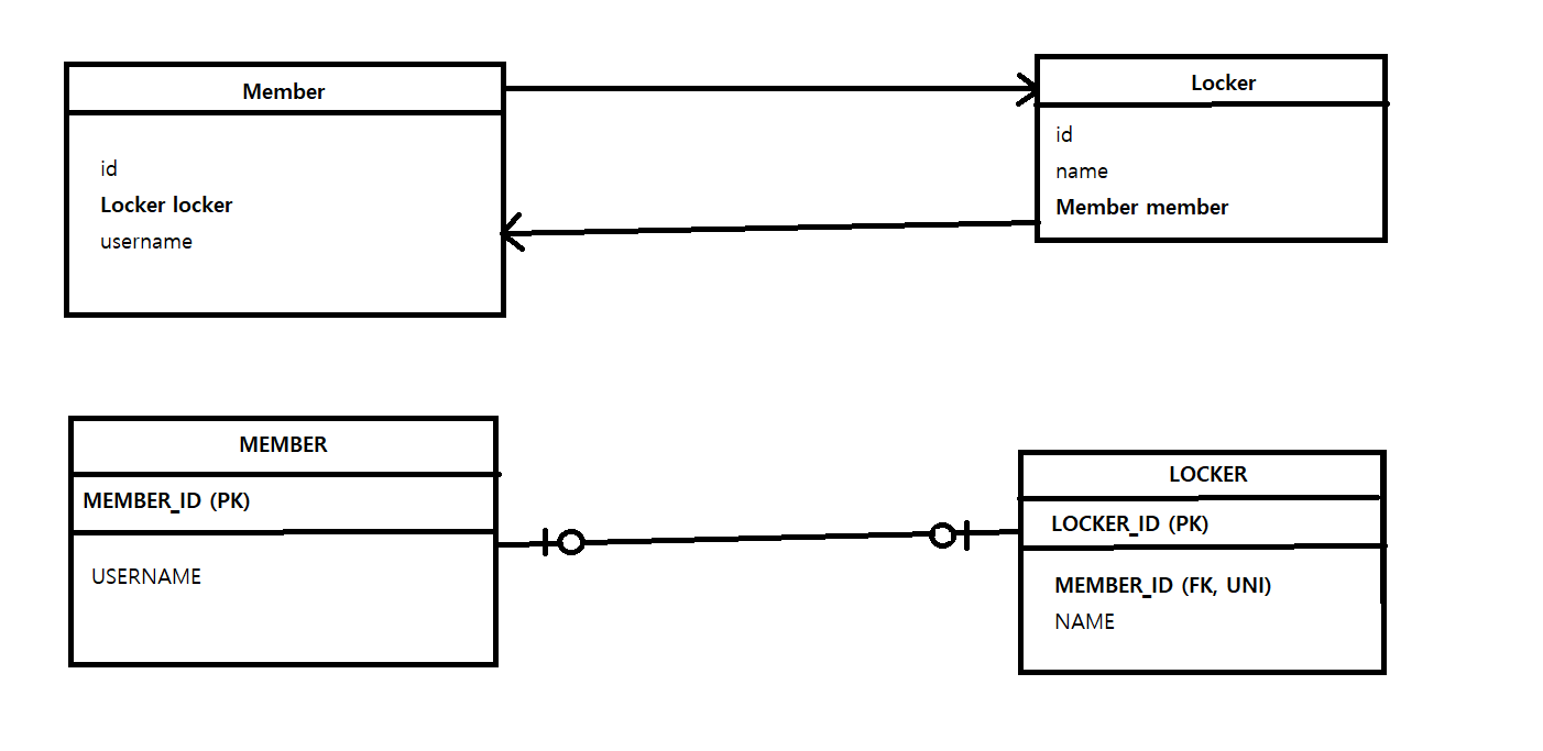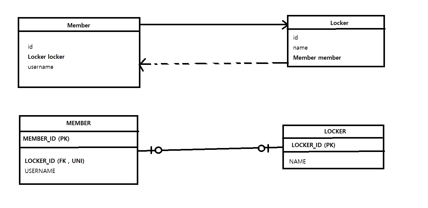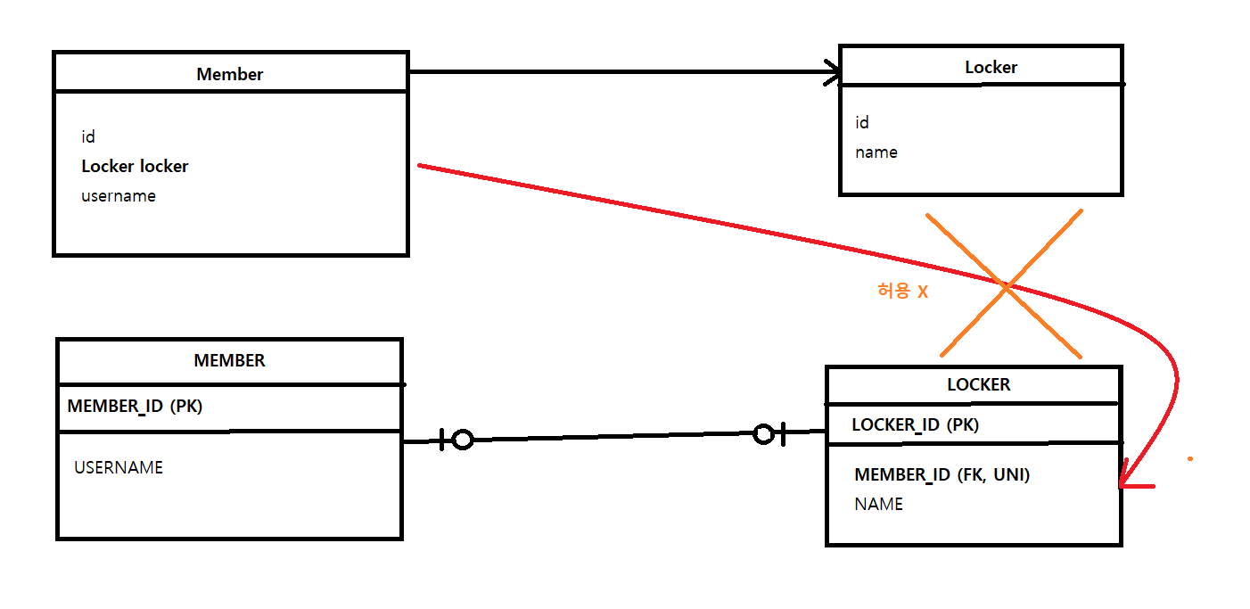 ์ผ๋์ผ ๊ด๊ณ์ด๋ฏ๋ก @OneToOne์ ์ฌ์ฉํด ๋งคํํ์๊ณ , ๋ฐ์ดํฐ๋ฒ ์ด์ค์๋ LOCKER_ID(FK)์ ์ ๋ํฌ ์ ์ฝ์กฐ๊ฑด์ ์ถ๊ฐํ์์ต๋๋ค.