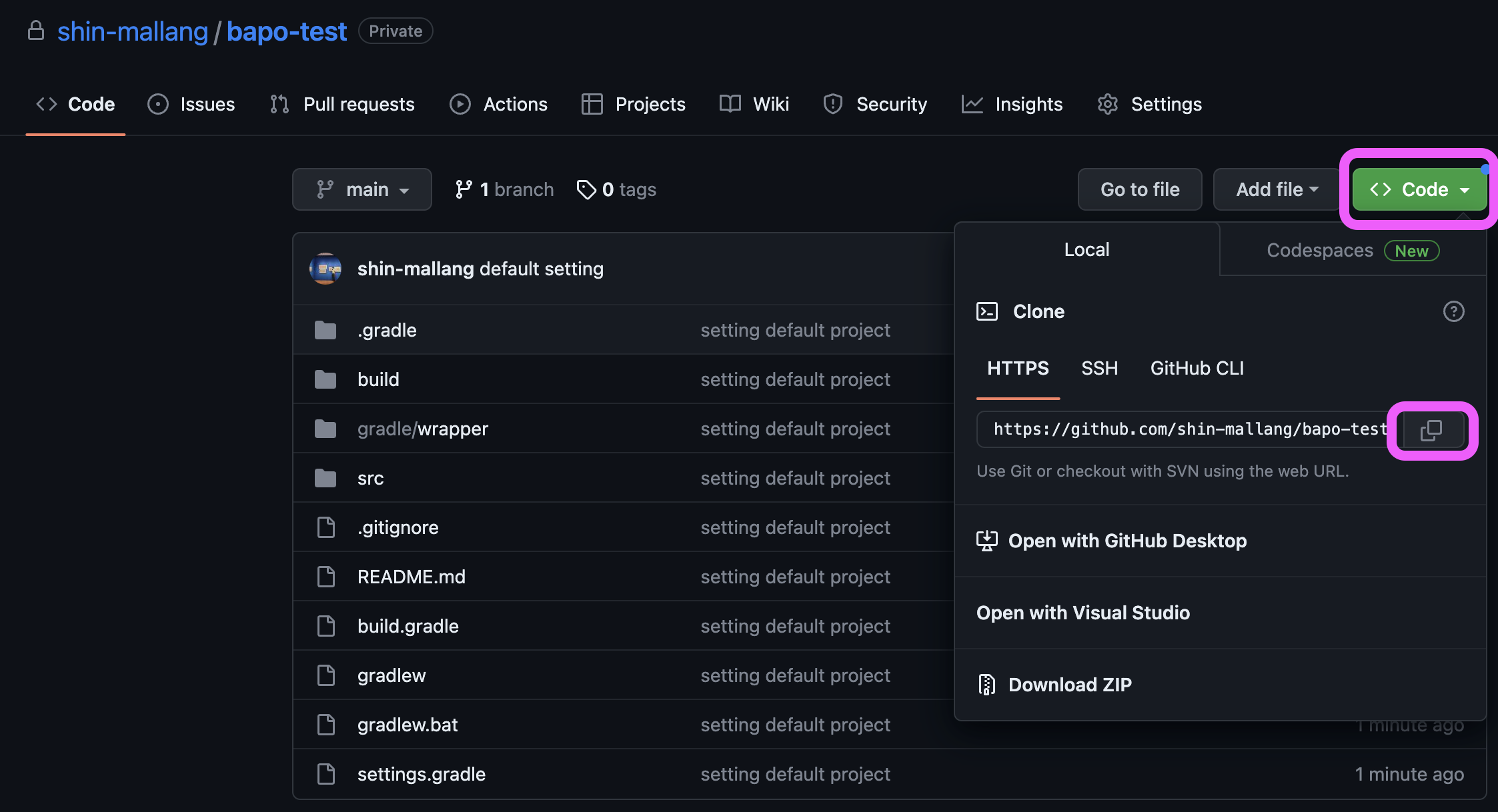 ์ด์ ํด๋น ํ๋ก์ ํธ๋ฅผ clone๋ฐ์ ์ ์๋๋ก, code ๋ฒํผ์ ๋๋ฅธ ๋ค ์ฃผ์๋ฅผ ๋ณต์ฌํฉ๋๋ค.
