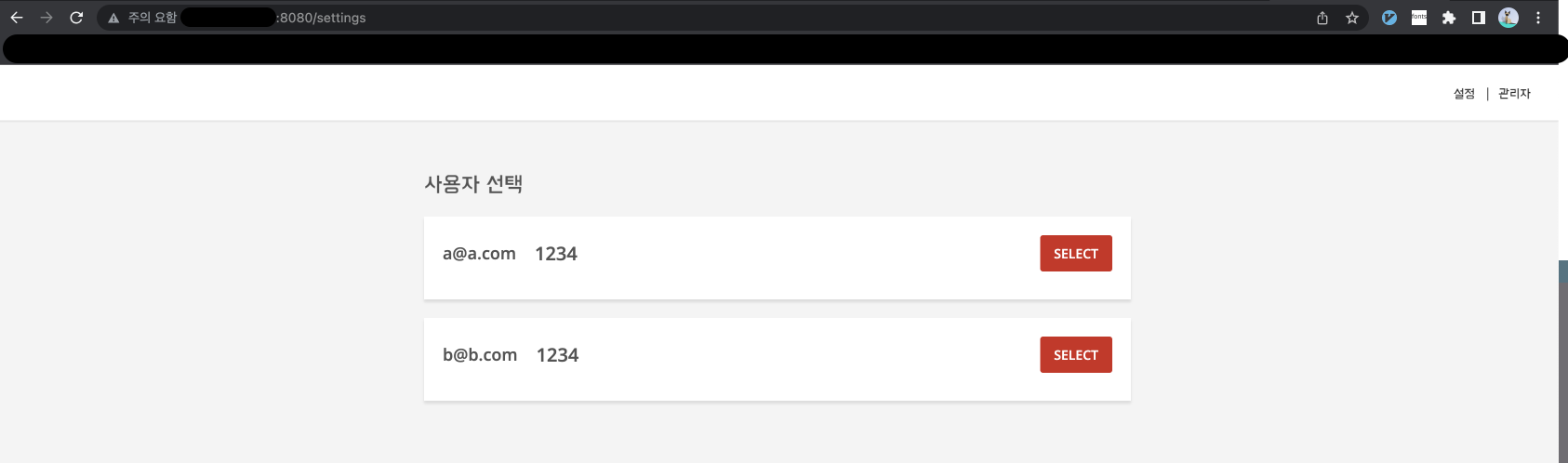 /settings URI๋ก ์ด๋ํ์ฌ ํ๋ฉด์ ์ ๋ณด์ฌ์ฃผ๋์ง ํ์ธํด ๋ณด๋๋ก ํ๊ฒ ์ต๋๋ค.
