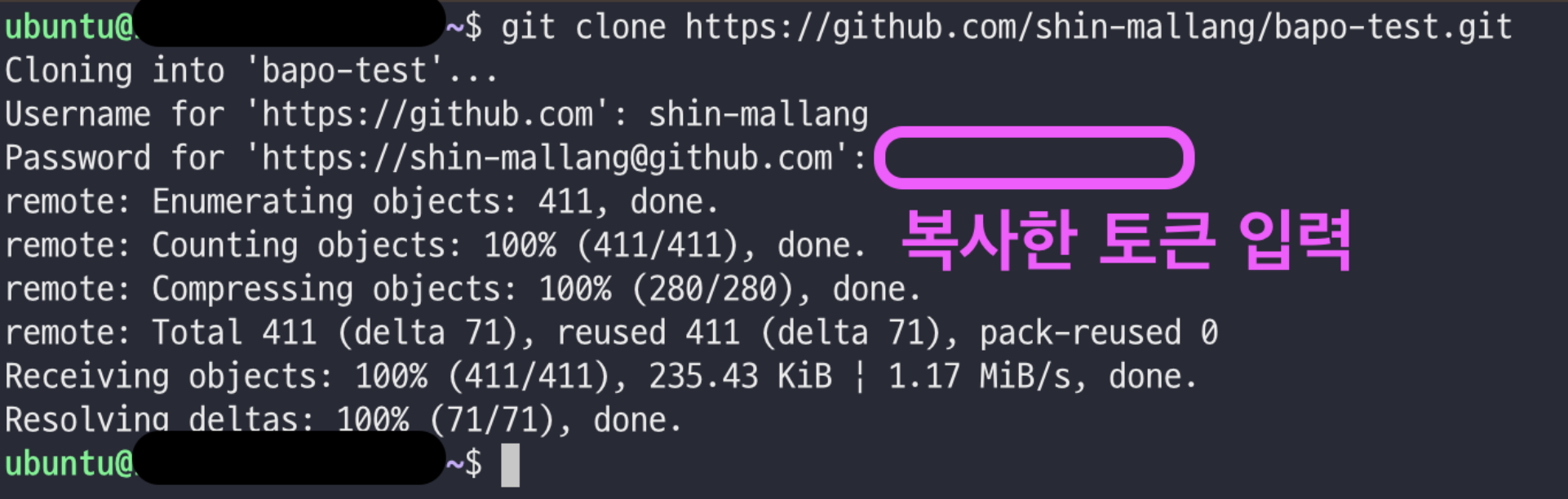 git clone [์์์ ๋ณต์ฌํ ๊นํ๋ธ ๋ ํฌ์งํ ๋ฆฌ ์ฃผ์]
