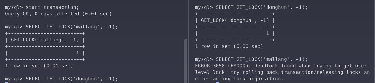 SELECT GET_LOCK('donghun', -1);