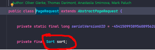 val pageRequest = PageRequest.of(1, 3, Sort.by(Sort.Direction.DESC, "username"))