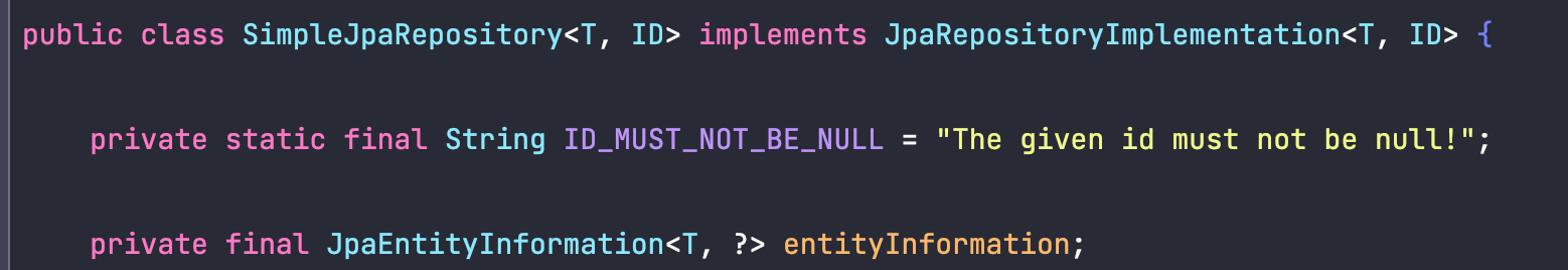 ์ด๋ JpaEntityInformationSupport์ getEntityInformation์ด ๋ค์๊ณผ ๊ฐ์ด ๊ตฌํ๋์ด ์๊ธฐ ๋๋ฌธ์ ๋๋ค.