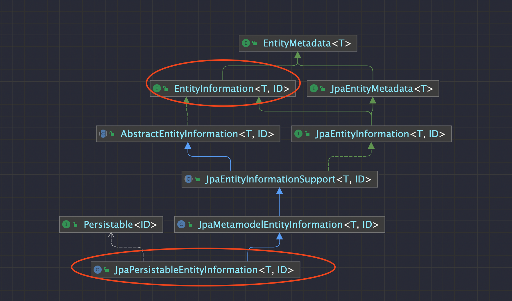JpaPersistableEntityInformation์ ๋ค์๊ณผ ๊ฐ์ด ๊ตฌํ๋์ด ์์ต๋๋ค.