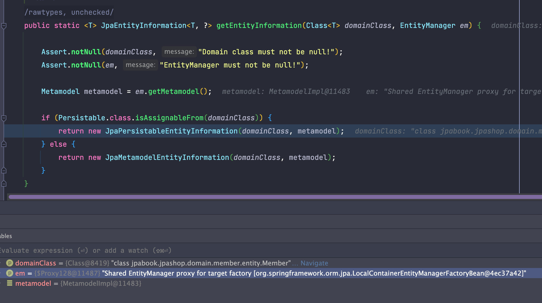 ์ค์ ๋๋ฒ๊น ์ ํด๋ณด๋ฉด JpaMetamodelEntityInformation ํ์ ์ธ ๊ฒ์ ์ ์ ์์ต๋๋ค.
